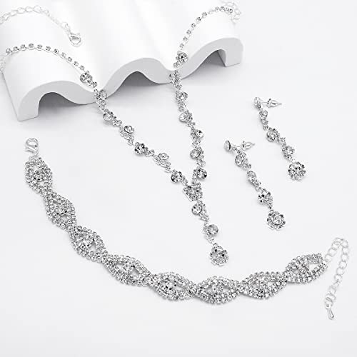 UDYLGOON Crystal Necklace Earrings Bracelet Jewelry Sets for Women Bridal Bridesmaid Wedding Prom Party