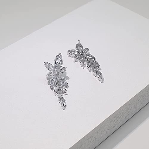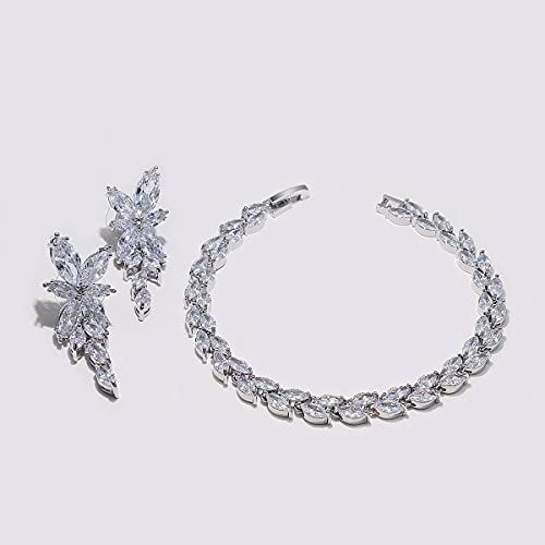 UDYLGOON Elegant Marquise Cubic Zirconia Wedding Earrings Bracelet Jewelry Set for Bridesmaid Wedding Prom Homecoming (White Gold)