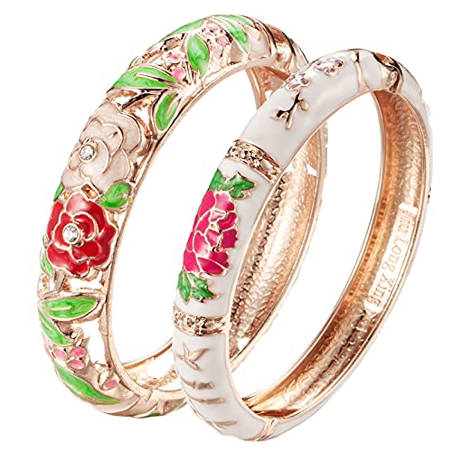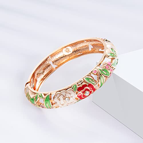 UJOY Handmade Enamel Bracelets Hollowed Filigree Golden Open Spring Hinge Cuff Crystals Bangles Jewelry for Women 88A10 green white