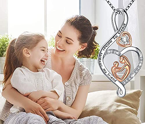 URMWMOO S925 Sterling Silver Always My Mother Forever My Friend Infinity Love Heart Pendant Mother Daughter Child Necklaces Mothers Gift Jewelry for Women Grandma Nana New Mom