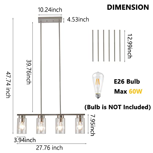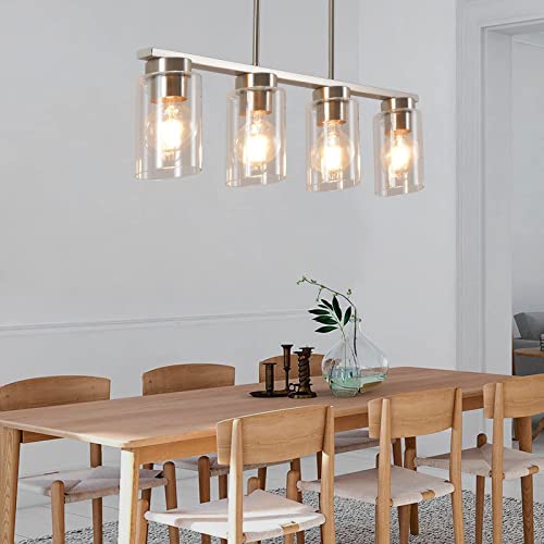 uznhty Dining Room Light Fixture,4-Lights Farmhouse Light Fixtures,Kitchen Island Lighting,Clear Glass Shade and Brushed Nickel,for Dining Room,Kitchen Island,Dining Table Lighting