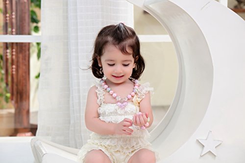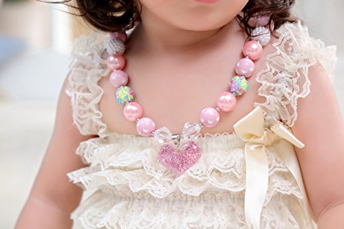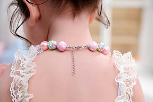 VCMART Girls Gilitter Heart Chunky Bubblegum Bead Necklace & Bracelet Set Fashion Jewelry Pendant with Gift Box