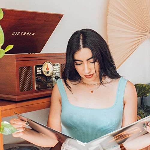 The Victrola Classic 7-in-1 Bluetooth turntable hasmany entertainment features. With 3-speeds, bluetooth connectivity, and built in speakers, your guests will be in awe of this entertainment system. This turntable also features a CD/cassette player, FMradio, an aux-in, and a RCA output.