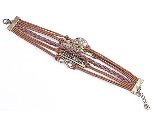 Vintage Handmade PU Leather Bracelet Bronze Tree of Life where Infinite Believe vintage leather rope bracelet