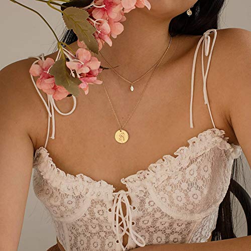 WEARON Birth Month Flower Necklace 14k Gold Plated Dainty Necklace Birth Month Engraved Floral Pendant Necklace Charm Disc Coin Necklaces for Women Personalized Gifts