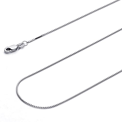 Wellingsale 14k Yellow OR White Gold Solid 0.8mm Box Link Chain Necklace with Lobster Claw Clasp