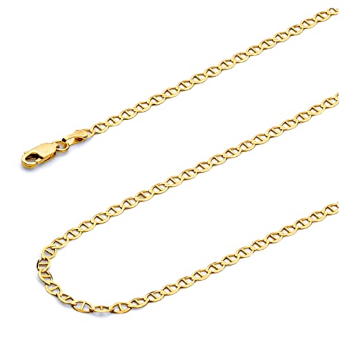 Wellingsale 14k Yellow Gold Solid 3mm Flat Mariner Chain Necklace