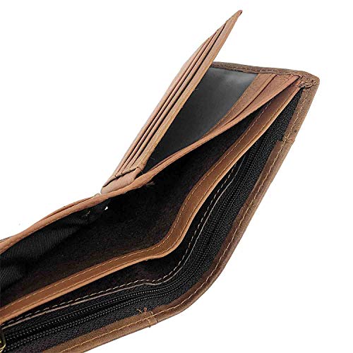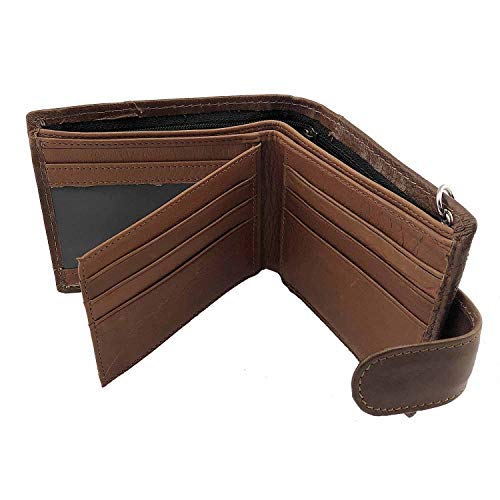 Wolf Snap Men Biker Genuine Leather Internal zipper Card Holder Wallet Purse With Chain