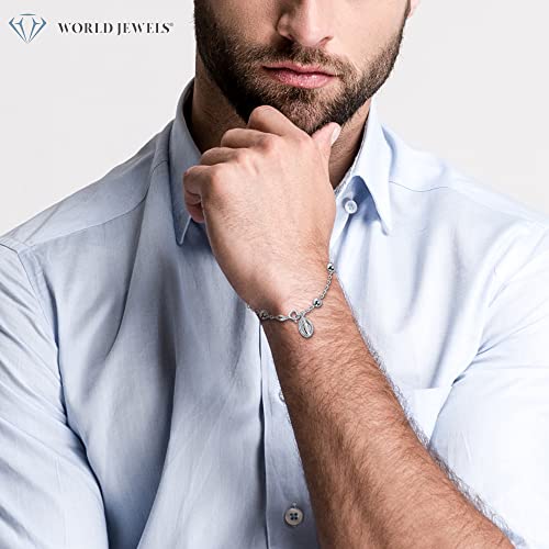 Elevate your style with our stunning World Jewels 925 Sterling Silver Miraculous Virgin Mary Medal Italian Charm Bracelet. This dainty Christian present is perfect for teen girls, featuring round beads and chain links for a delicate and elegant look. Show off your faith with this Catholic gift, designed to fit a 7.5-inch wrist. Add a touch of grace to any outfit with this beautiful bracelet.