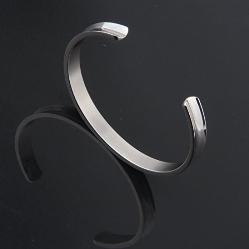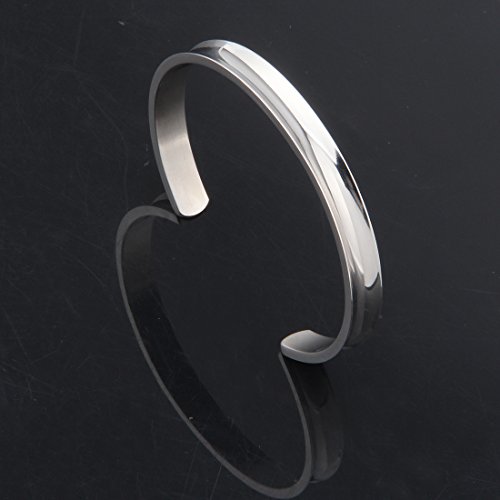 WUSUANED Hair Tie Bracelet Stainless Steel Grooved Cuff Bangle Gift for her (Silver)