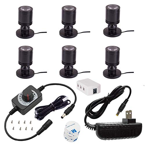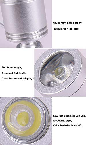 Xking Set of 6 LED Spotlights for Model Display Artwork,Each 2.5W,Aluminum,Black Finish,Includes All Attachments,Instant On (Warm White)