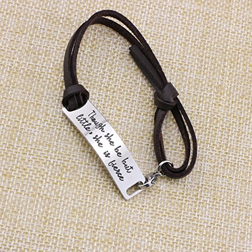 Yiyang Motivational Gift Inspirational Leather Bracelet Adjustable Bangle Jewellery Stainless Steel (Though she be but little, she is fierce-Brown leather)