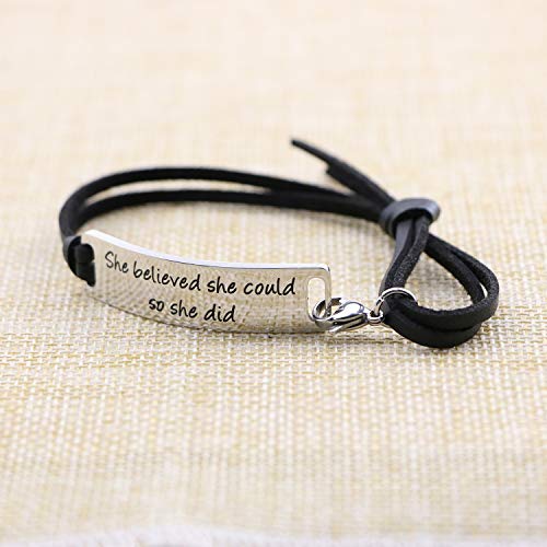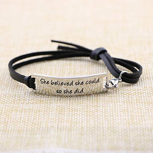 Yiyang She Believed She Could So She Did Inspirational Bracelets for Women Mantra Leather Adjustable Bangle College Graduation Jewelry Gift
