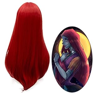 Uncategorized60cm Red Sally Wig for Women, Long Straight Center Part Cosplay Wig for Halloween Costume Party