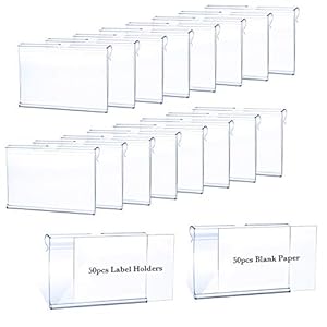 Uncategorized50pcs Labels for Storage Bins Plastic Label Clip, Basket Labels Clip On Wire Shelf Price Label Holder Merchandise Sign Display Holder, 50pcs Label Insert Included (6x4cm)