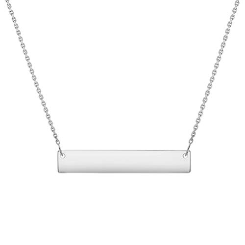 Solid 14k White Gold Small Engravable Personalized Bar Necklace with Lobster Claw (Adjustable Chain 16" to 18")