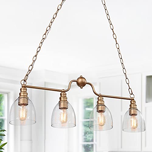 Chandeliers for Dining Room, 4-Light Modern Gold Light Fixture, 32" Island Lights for Kitchen with Seeded Glass Shades