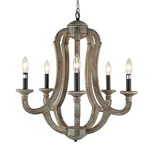 UncategorizedVintage Farmhouse Chandelier 5-Light Rustic Wood Chandeliers Wooden Ceiling Pendant Light Fixtures for Dining Room, Kitchen Island, Bedroom, Living Room, Foyer,Entryway, Bathroom