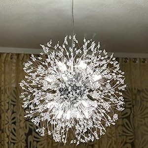 UncategorizedVikaey 12-Light Modern Chandelier,Firework Sputnik Living Room Chandeliers,Dining Room Dandelion Crystal Chandeliers for Bedroom Entryway Bathroom Foyer Staircase,Chrome