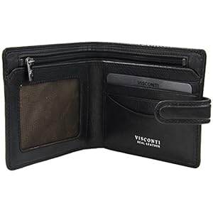 Coin section with press stud fastening. The wallet is secured by a leather tab with press stud closure. The front of the wallet is blind embossed with the Visconti logoSKU: n/a -