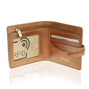 The Visconti Tuscany Collection features RFID blocking technology which prevents unauthorised access to the data contained on contactless debit/credit cards whilst these cards are contained in the closed wallet