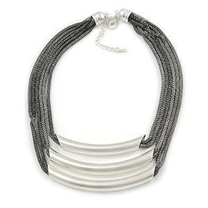 Avalaya Statement 3 Strand Layered Dark Grey Mesh Necklace with Tunnel Detailing - 48cm L/ 6cm Ext