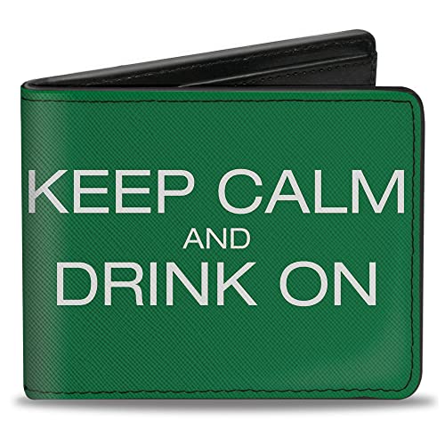 Buckle-Down Men's Wallet, Bifold, Keep Calm and Drink on Beer Green White, Vegan Leather, Multicolor, 4.0" x 3.5"